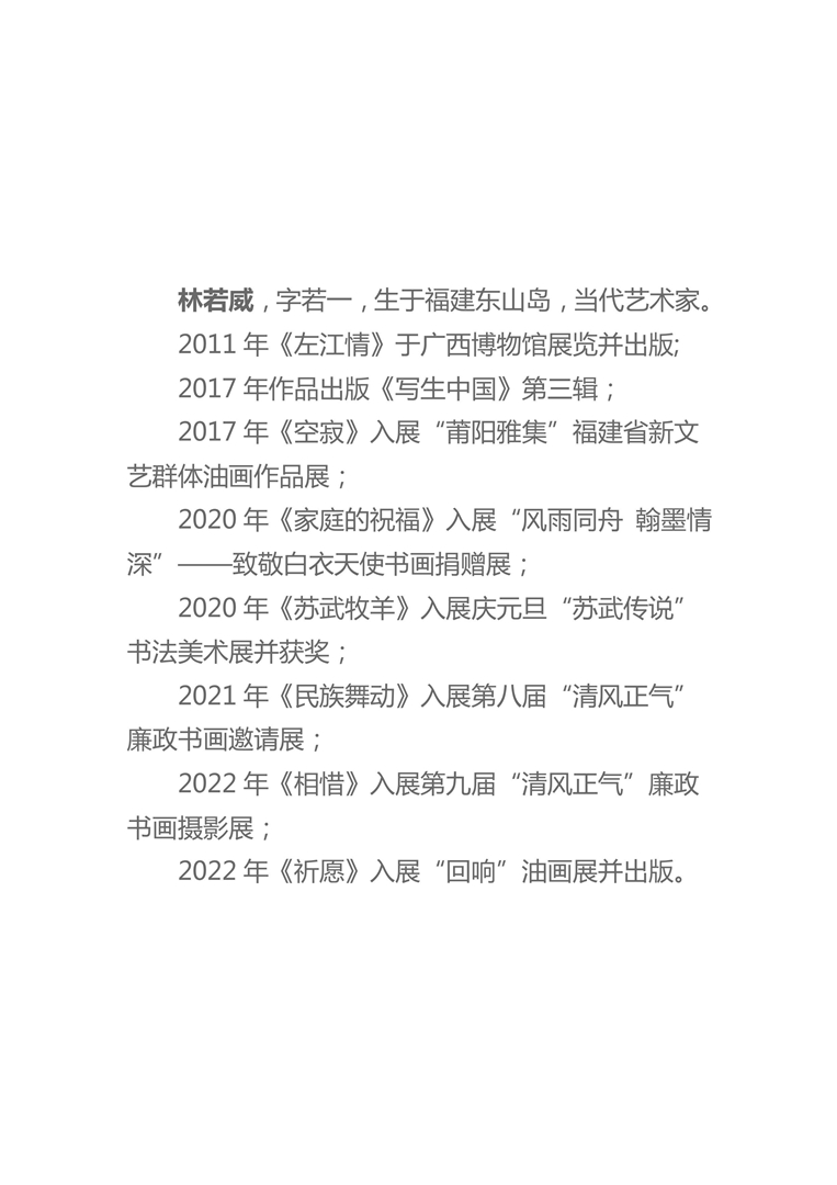 林若威,字若一,当代艺术家,于福建东山岛,当代艺术家。
